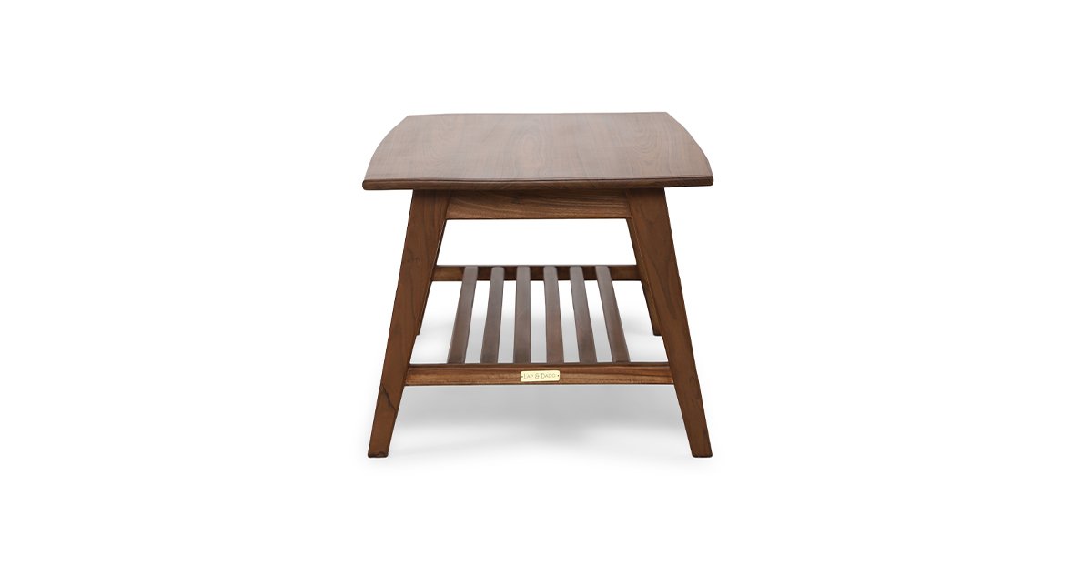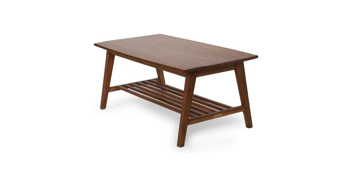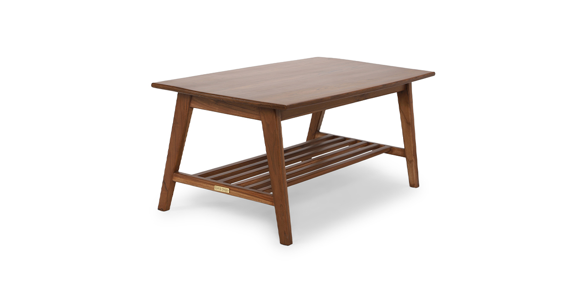 Crafted in solid teak wood, The Abiko coffee table is naturally elegant. With an ample sized table top and slatted base shelf, it begs to display your prized books or a cheese platter.