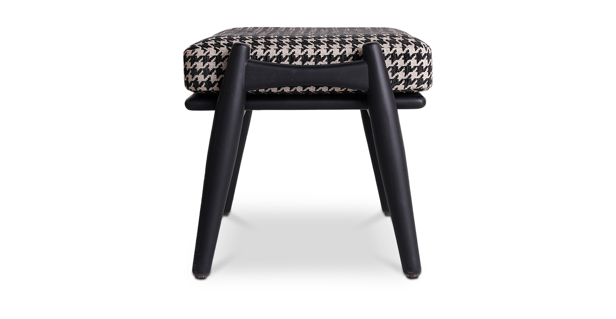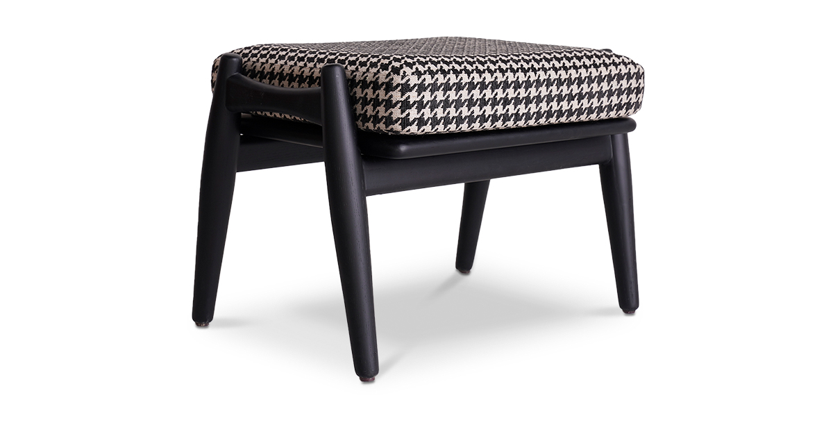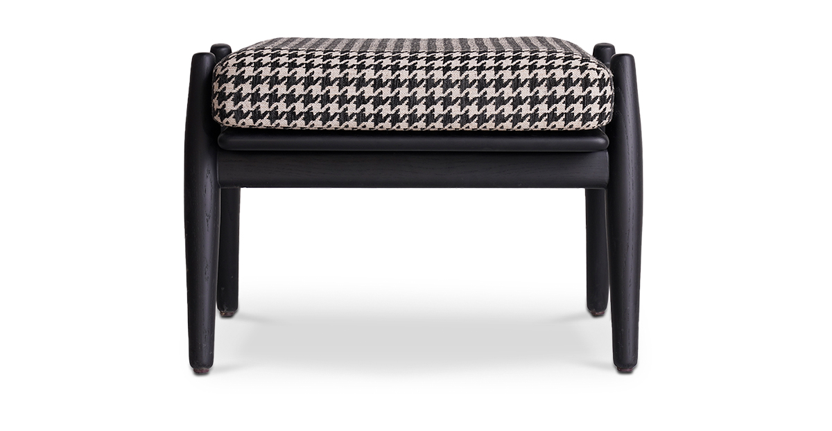 Put your feet up with the Aden Footstool in a tapered oak wood frame and striking houndstooth upholstery. Pair it with the Aden lounge chair — or have it all to yourself. The Aden Lounge Chair and Footstool are sold separately.