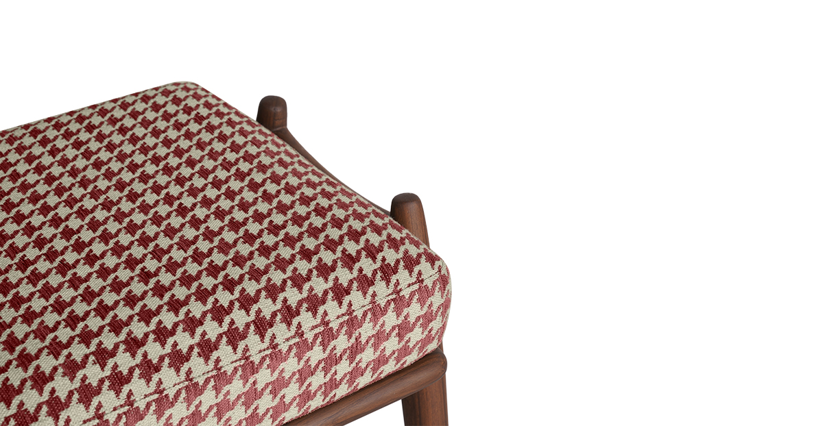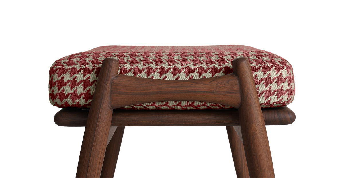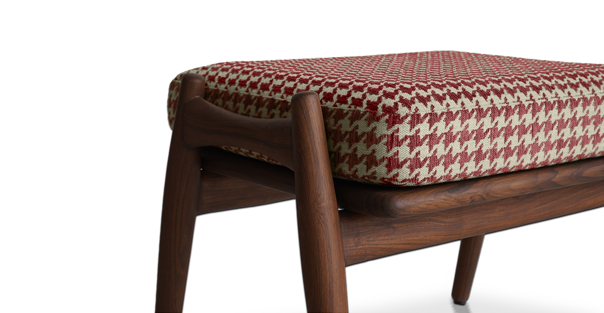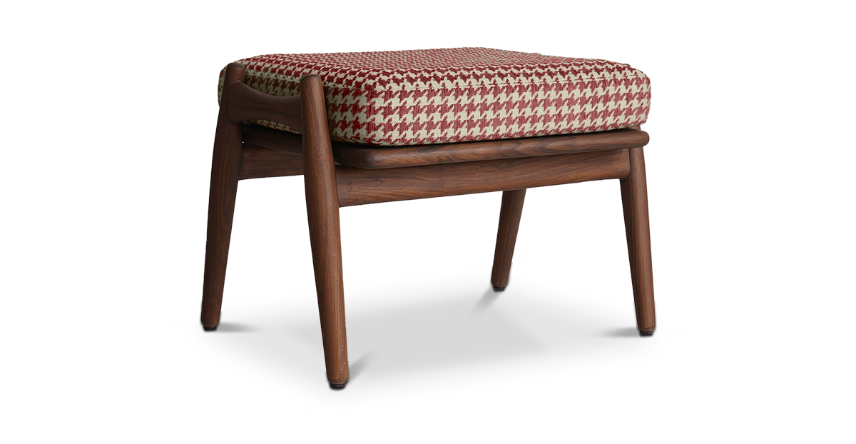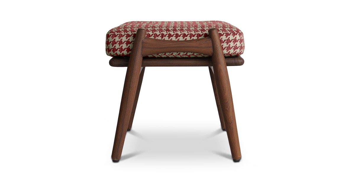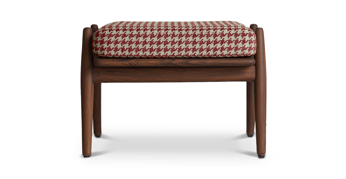 Put your feet up with the Aden Footstool in a tapered teak wood frame and striking houndstooth upholstery. Pair it with the Aden lounge chair — or have it all to yourself. The Aden Lounge Chair and Footstool are sold separately.