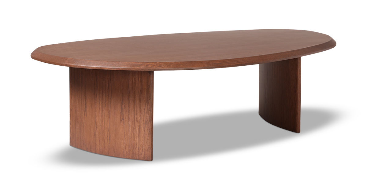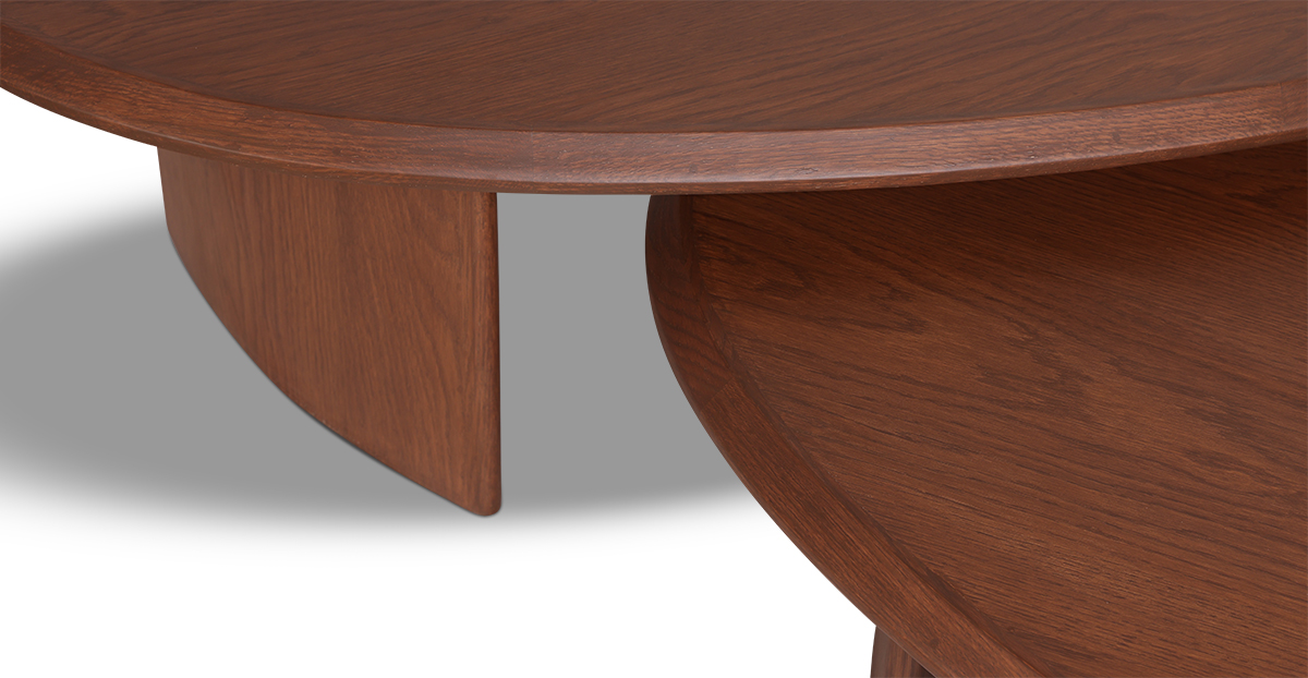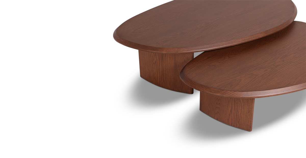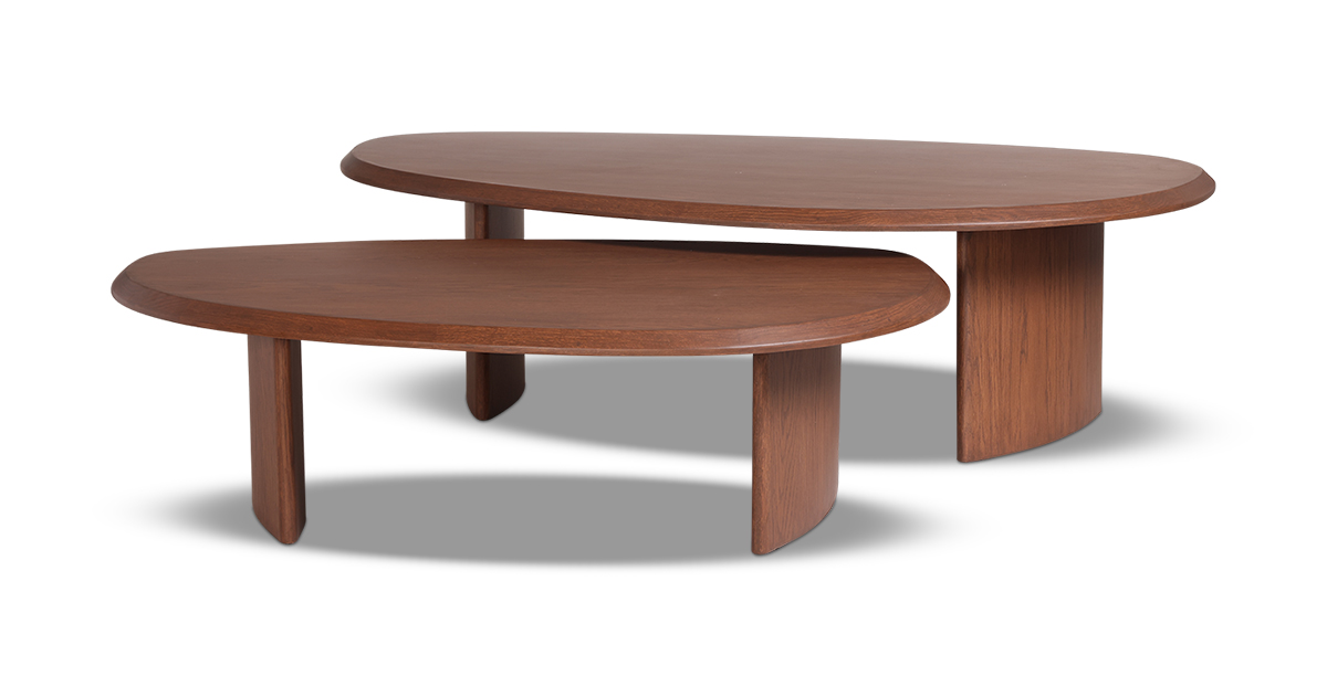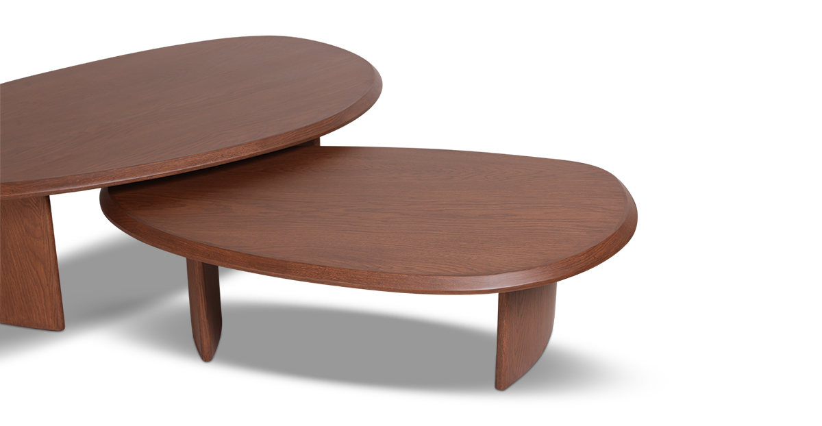 Add sculptural charm to your living room with the Altona nested coffee tables. Crafted in oak veneer with a warm teak finish, their generous size is perfect for displaying coffee table books or gathering around for cozy conversations.