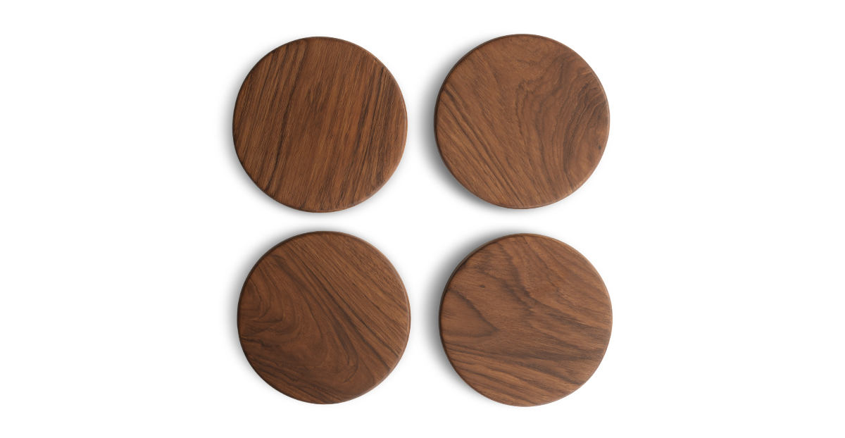 ₹999Elevate your sipping game with this sleek set of 4 Vapi coasters in solid teak wood. With a smooth PU finish and stylish curved edges, they’re the perfect blend of charm and durability. As is characteristic to solid wood, the grains on each piece will differ, making them uniquely yours.