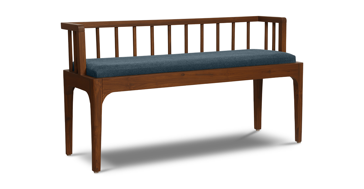The compact and versatile Batur bench crafted in teakwood with a low spindled back and sides is perfect to style up the entryway or for some additional seating.