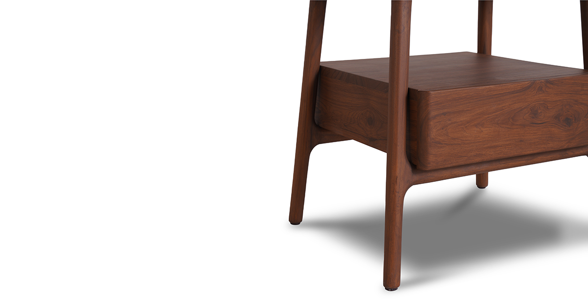Accentuate your living or bedroom space with the stunning mid century Cavan Side Table. Crafted in solid teak wood with softly tapered edges it’s the perfect spot to showcase an heirloom vase with a drawer for storing all you knick-knacks below.
