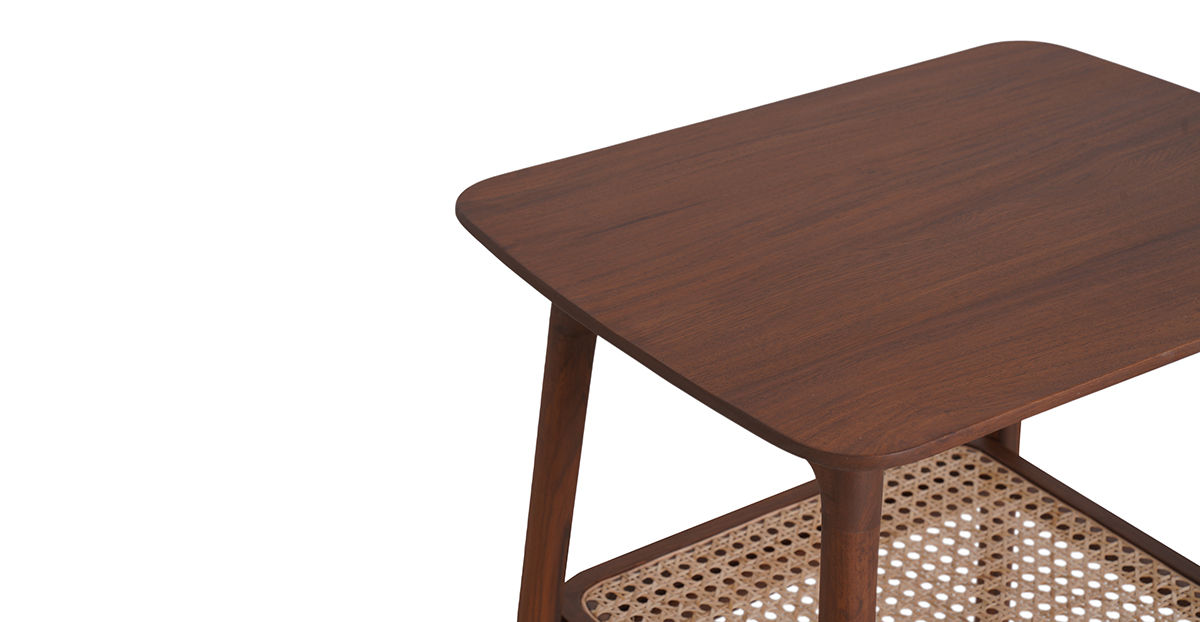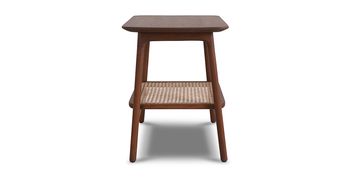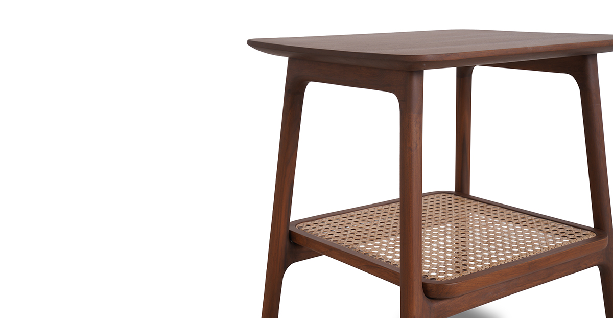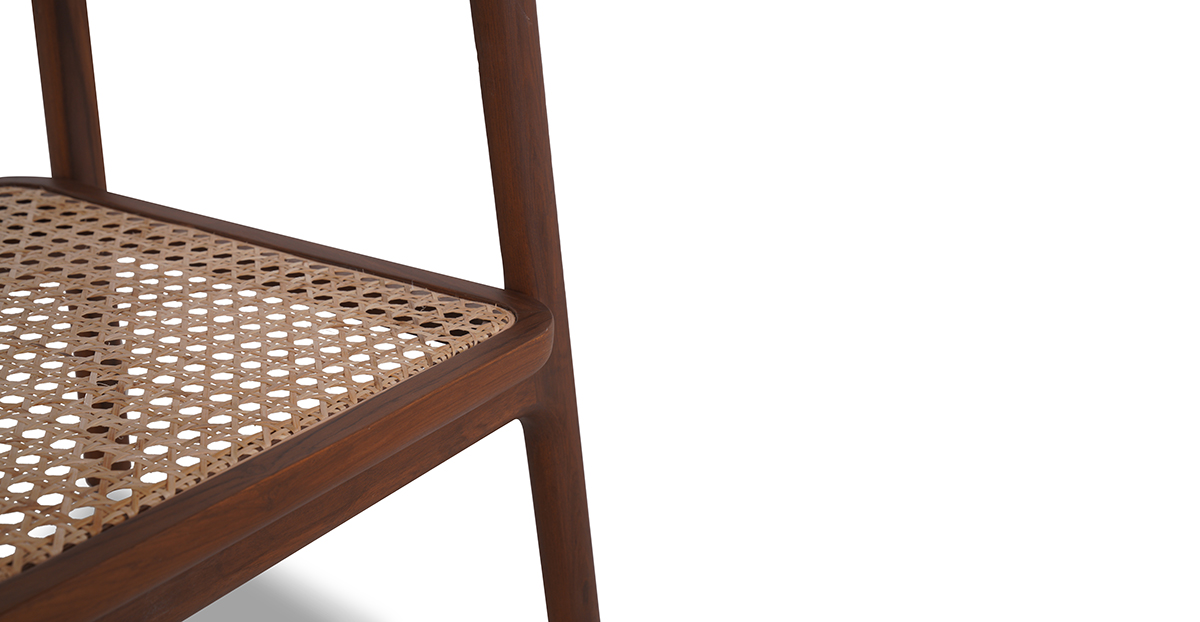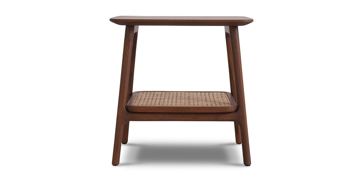 Accentuate your living or bedroom space with the stunning mid century Cavan Side Table. Crafted in solid teak wood and natural fisheye canework with softly tapered edges, it’s the perfect spot to place that vase of lilies above and your magazine collection below.