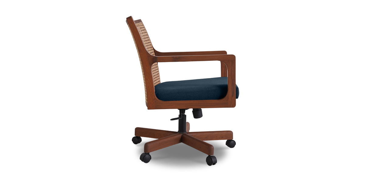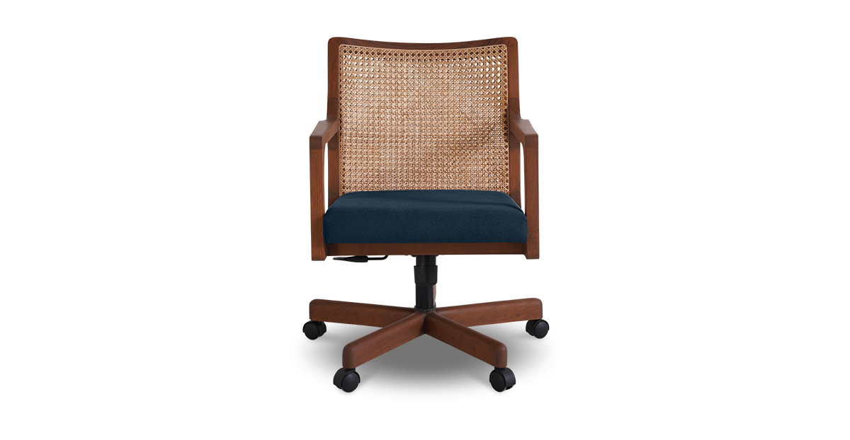 Constructed in a solid teak wood frame and legs, the sleek silhouette of the Clarens Study Chair brings vintage charm to your study. With its handcrafted rattan work back and comfortable upholstered seat, it’s sure to elevate your work from home.