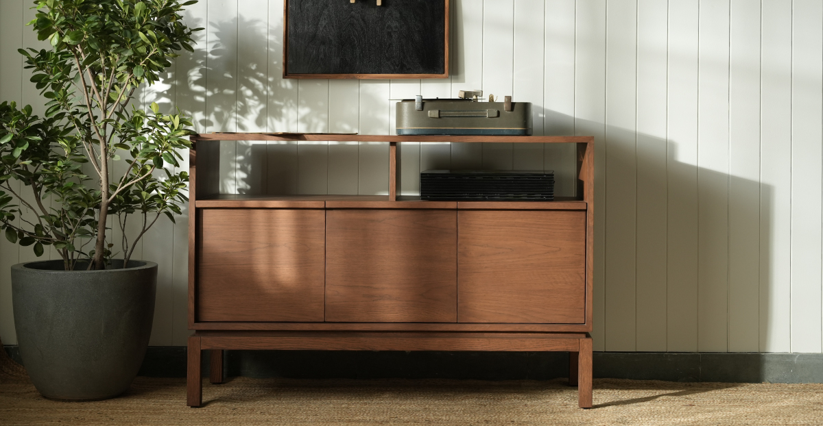 ₹37,999Meet the Toledo vinyl and turntable unit —your vinyl sanctuary with serious style. Handcrafted in oak wood and veneer, with a warm teak finish. It features three flip-friendly LP drawers with built-in wooden handholds and enough space for your turntable and amplifier. Sleek oak legs with a chic groove detail bring retro charm with a modern attitude.