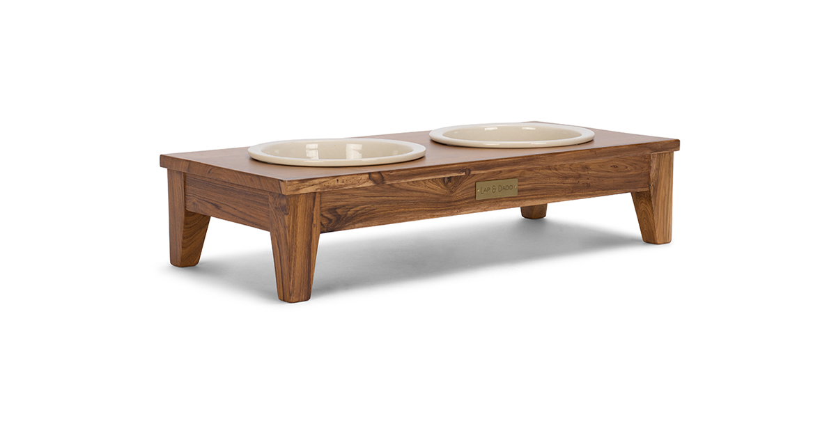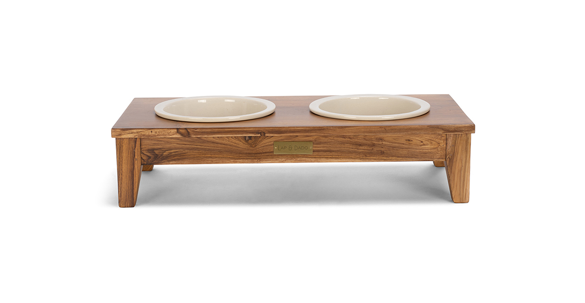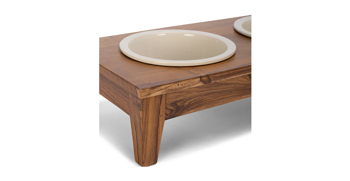 Ideal for cats or small dogs, the Dessie Feeding Station is constructed in teakwood and comes with 2 removable stainless steel bowls.