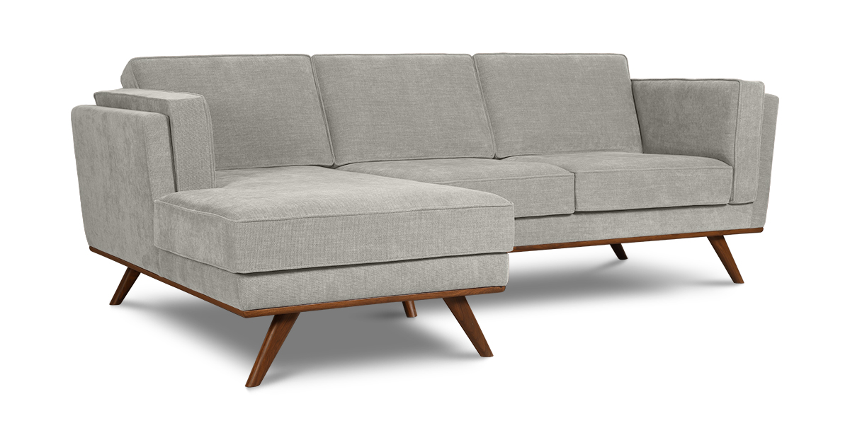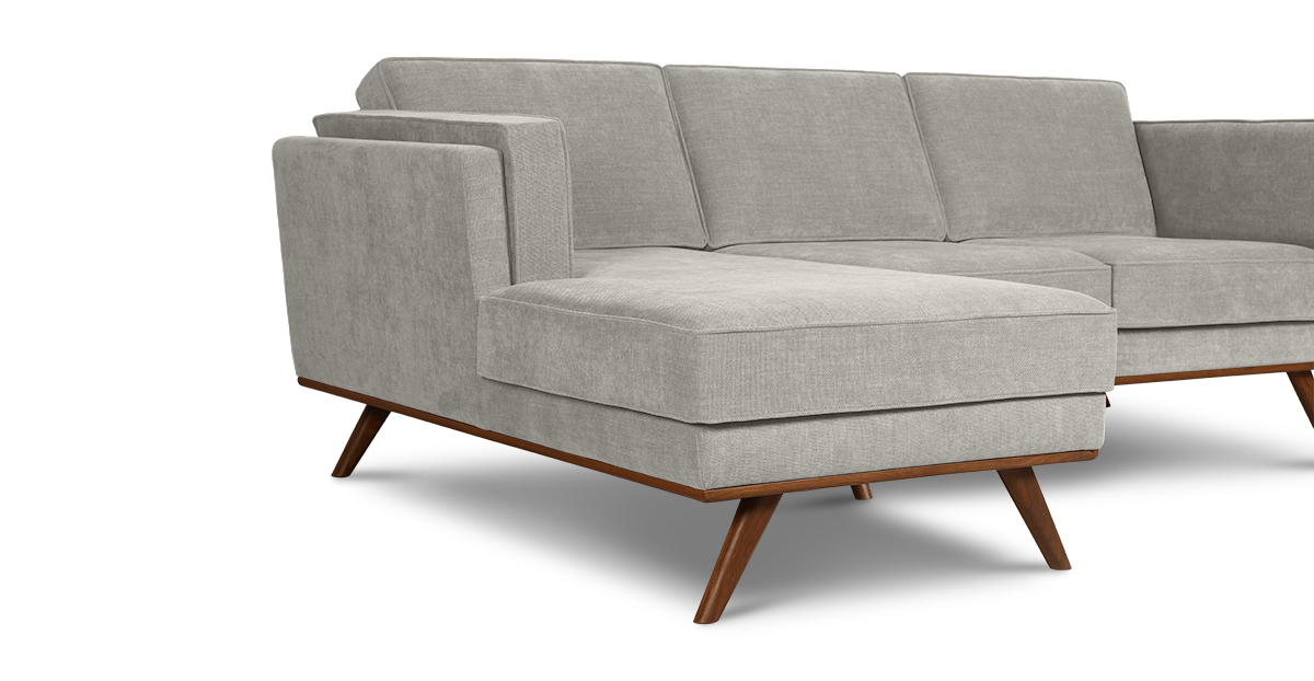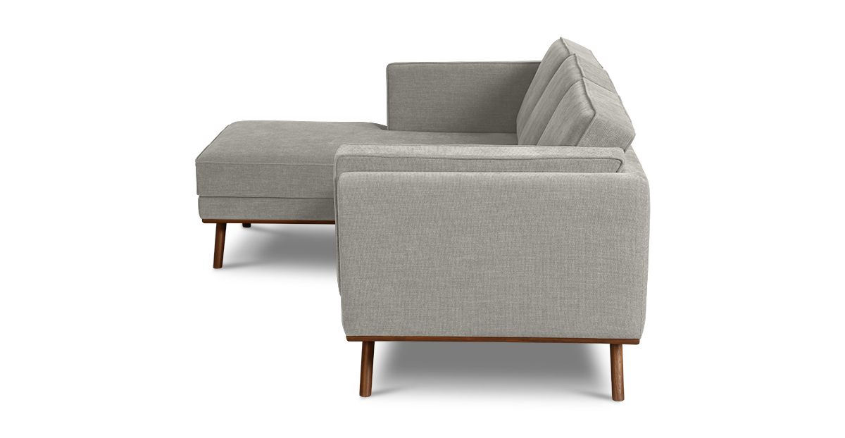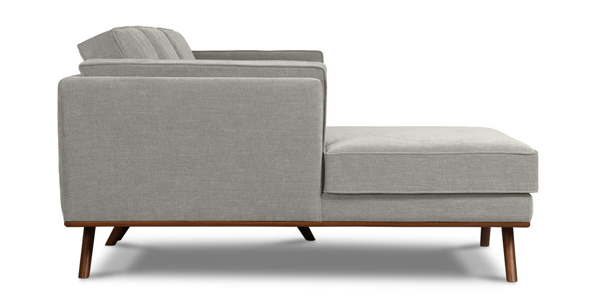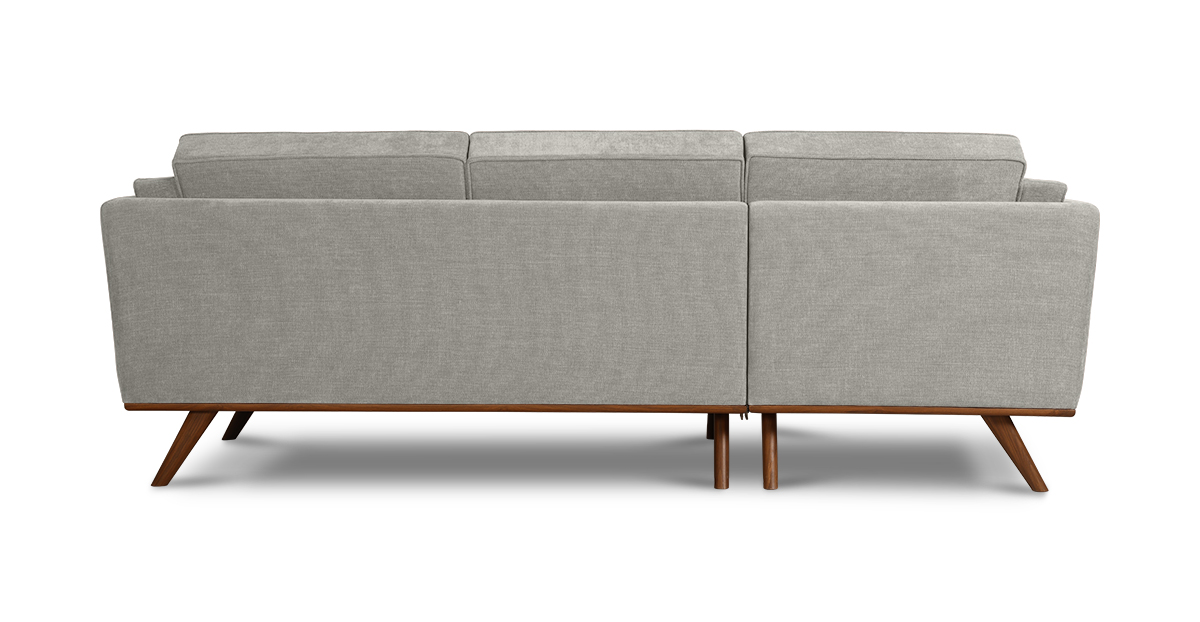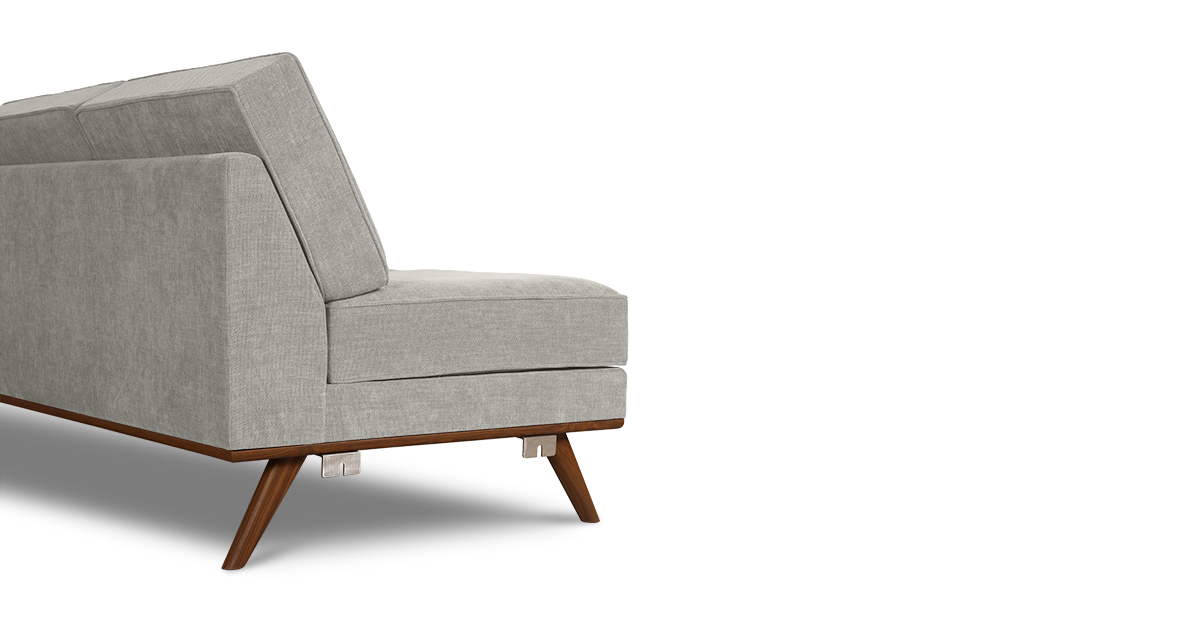 Set atop a solid wood frame with tapered solid teak wood legs, the Hobbs sectional L-sofa is an update to a classic mid-century modern style. The loose seat, back and side cushions allow you to snuggle comfortably and make for easy cleaning.