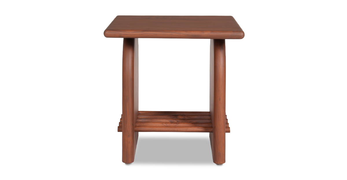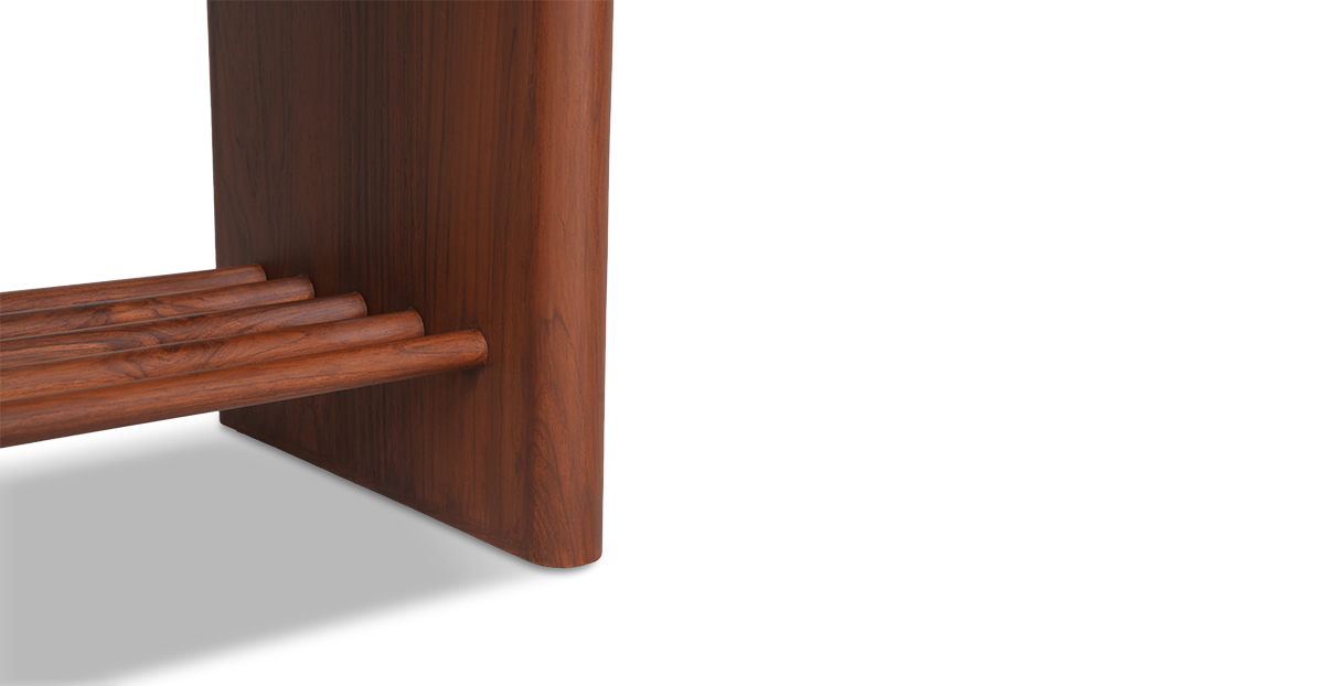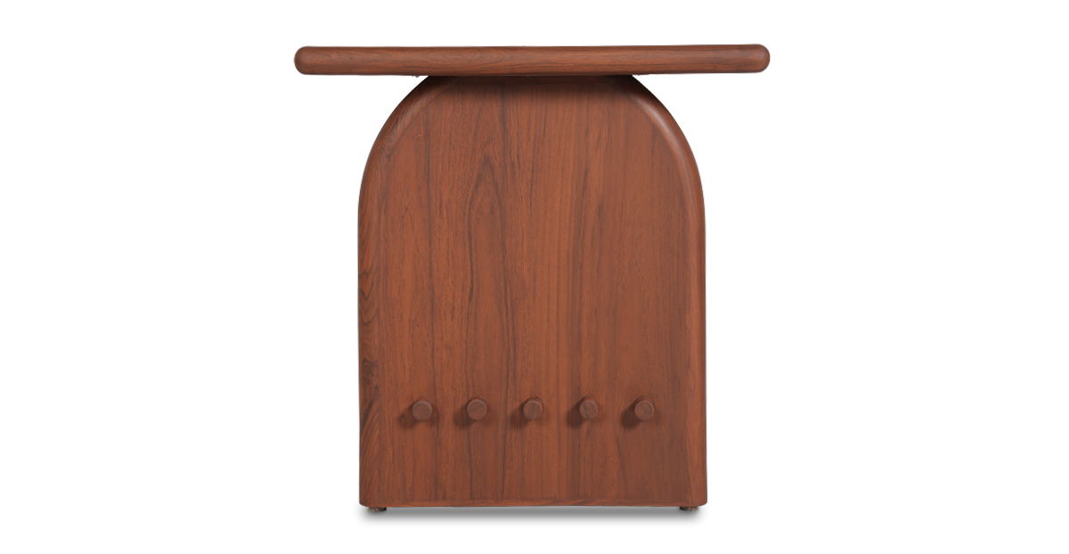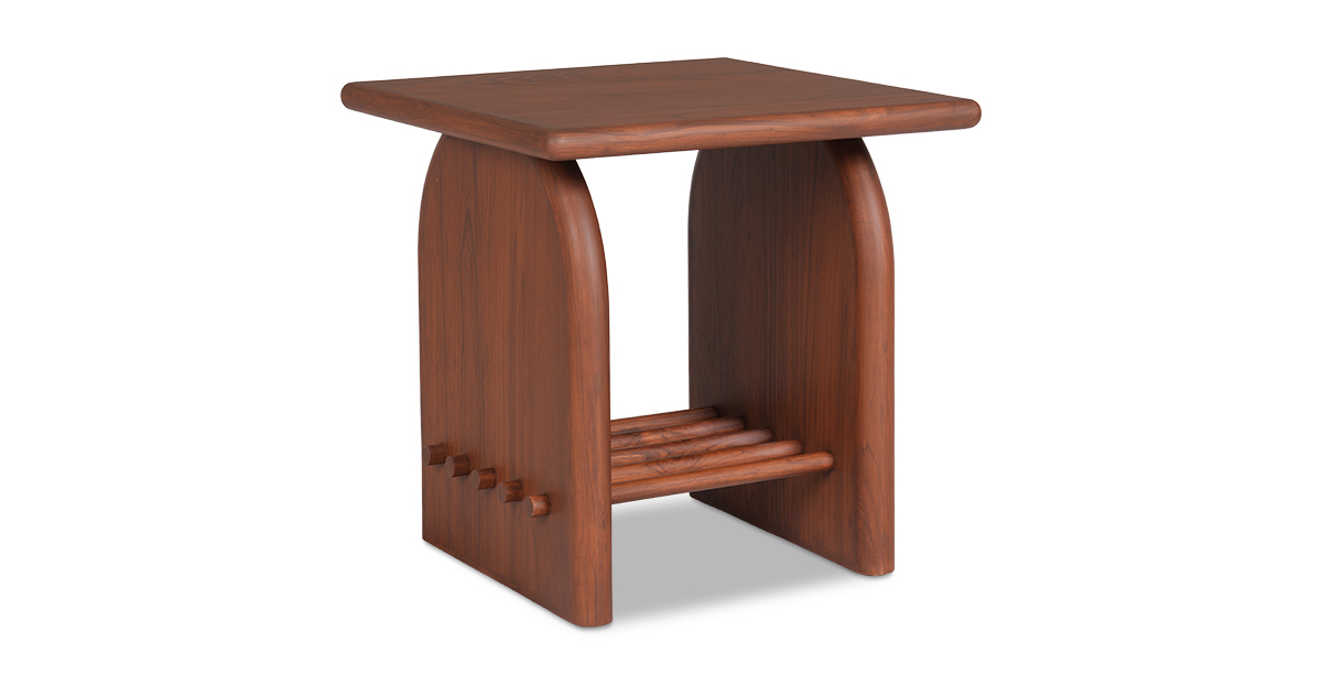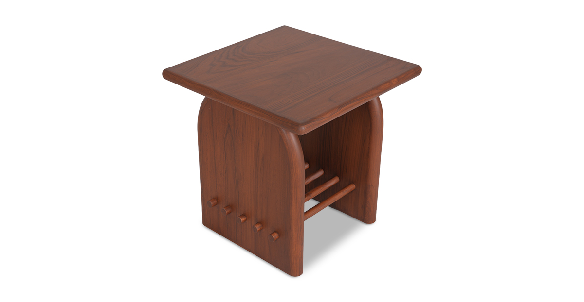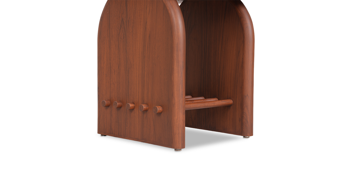 The Joplin side table is a showstopper in sculptural form—its beautifully curved corners and uniquely arched legs bring the drama, while sleek hand-turned spindles at the base add both balance and bonus storage. Crafted in teak wood and veneer, it’s spacious, striking, and ready to elevate everything from coffee cups to conversation.