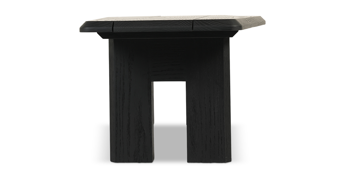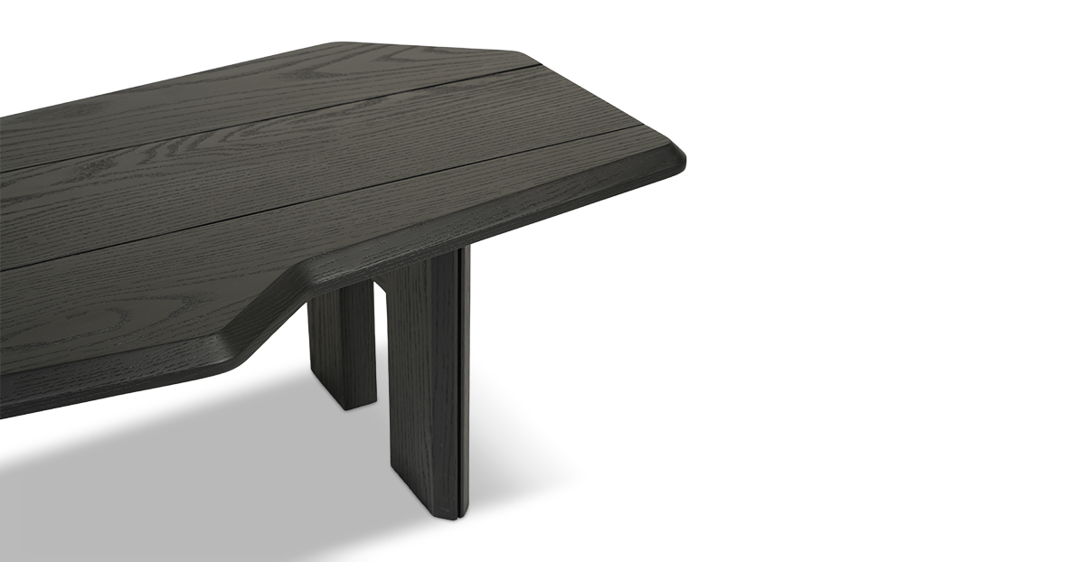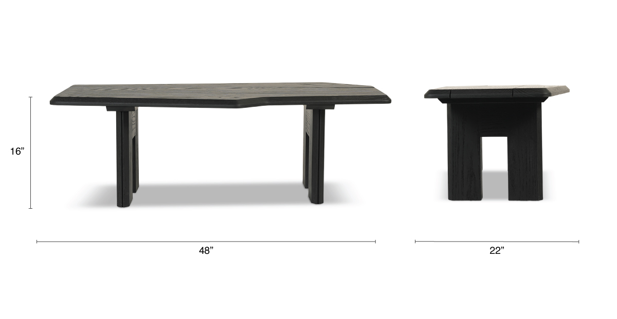 Bold and sculptural, the Leeds coffee table is just the right kind of offbeat. Crafted in ash wood with a beautiful open grain finished in black, this asymmetrical coffee table strikes the perfect balance between edgy and elegant. Artful angles, rich texture, and loads of personality — meet your new conversation starter.