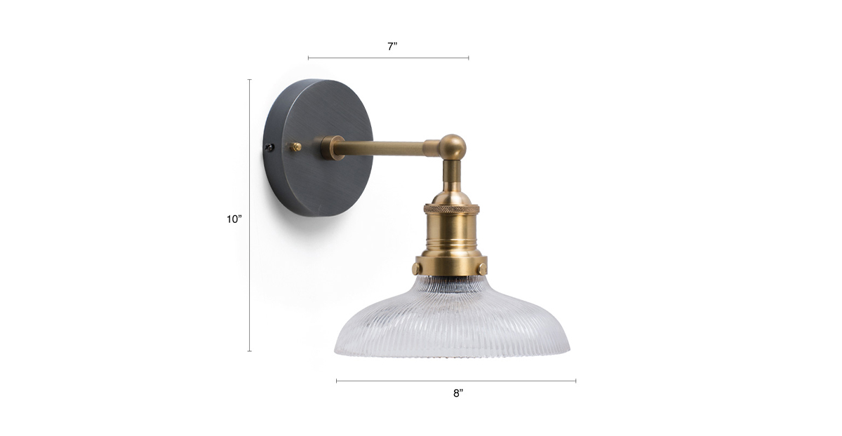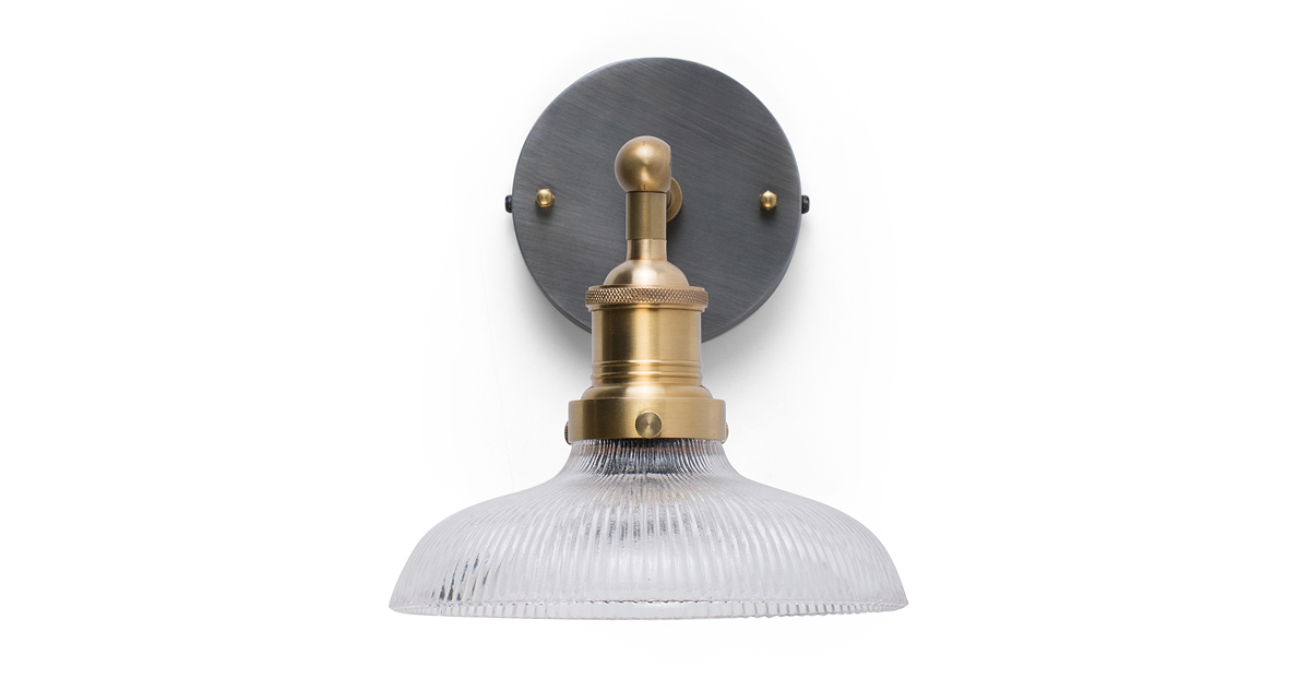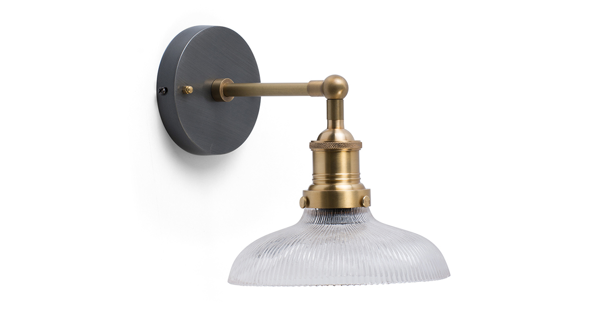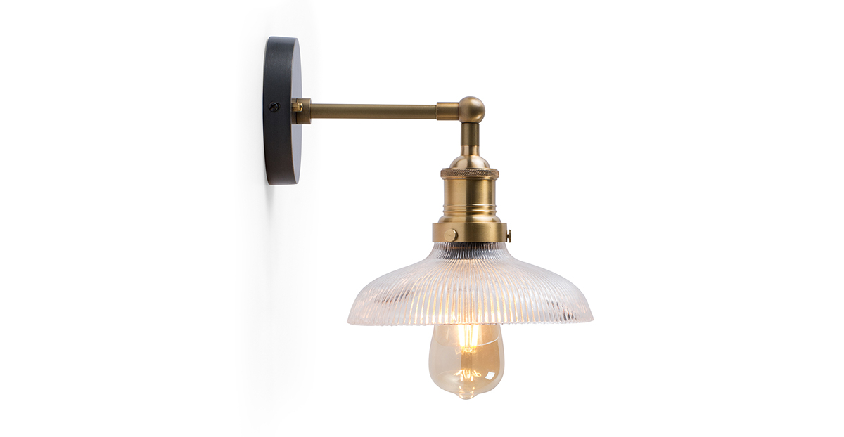 With it’s curved ribbed glass shade and brass holder, the Merlin Wall light works well both for contemporary and classic interiors.