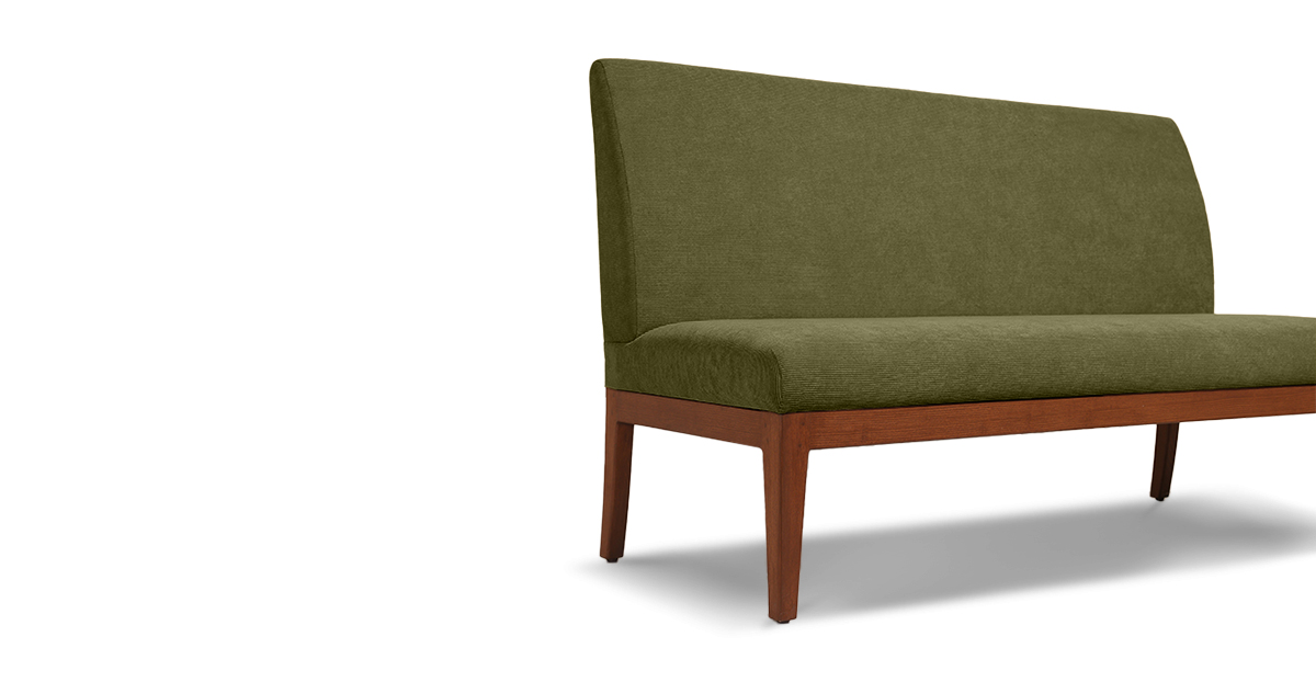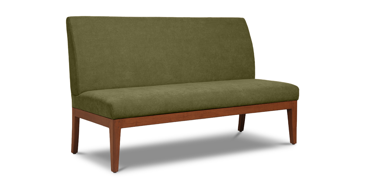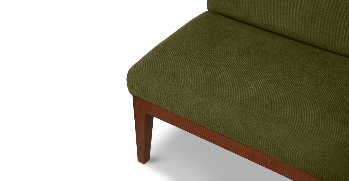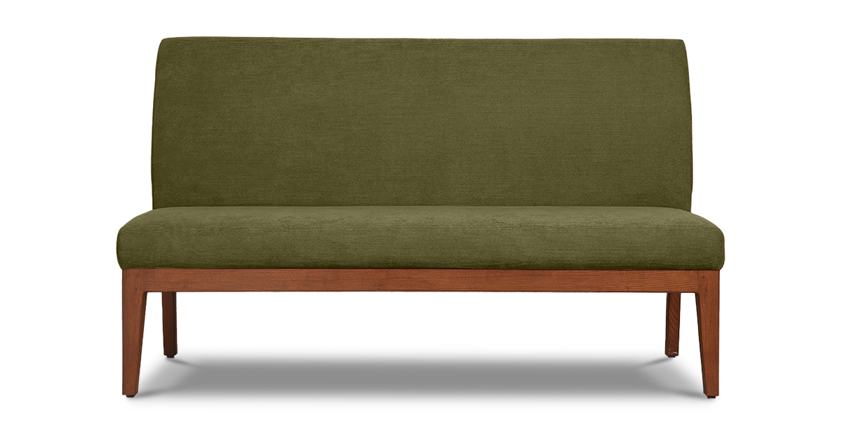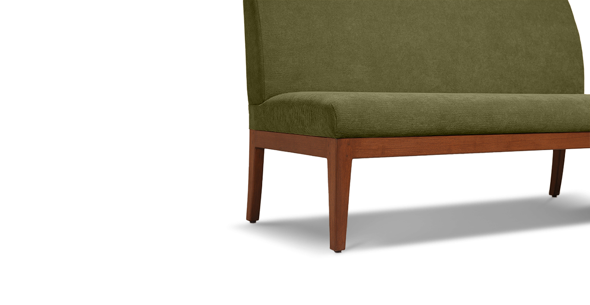 Get ready to dine in style with the retro-chic Parma Banquette! Cushy, fully upholstered seat and back in groovy corduroy bring comfort with a nostalgic twist. Perched on tapered ash wood legs in a warm teak finish, this banquette is perfect for adding some mid-century cool to your space.