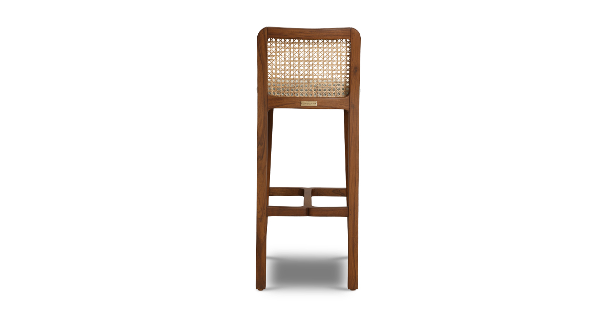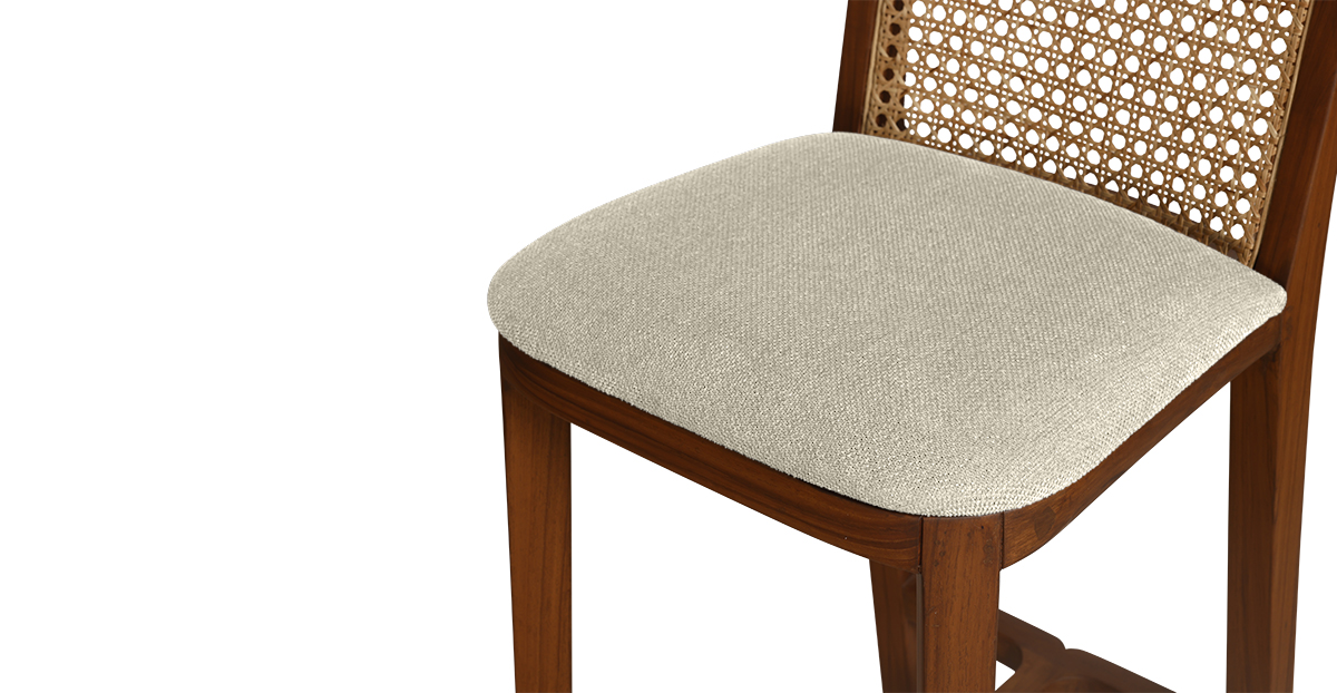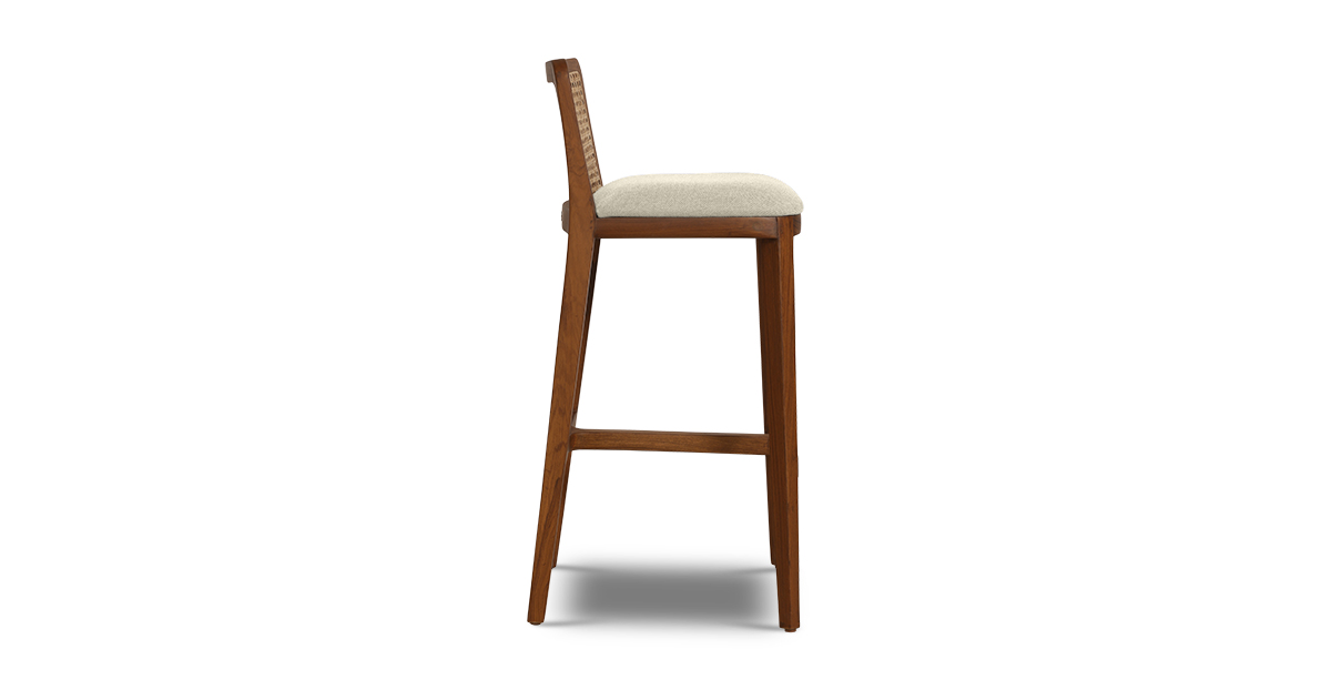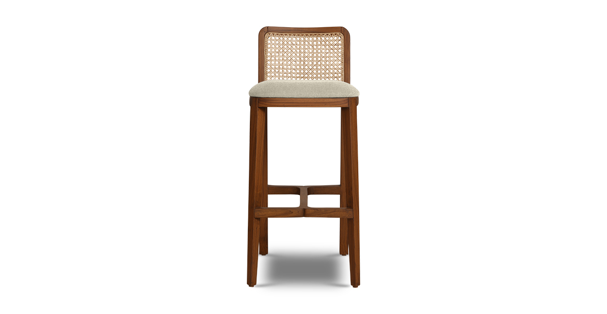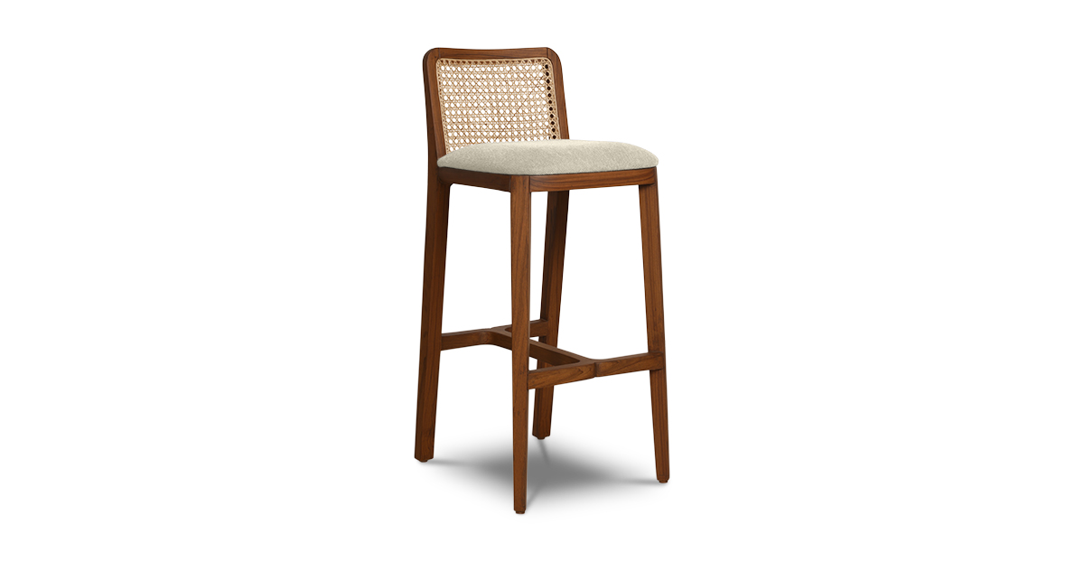 Crafted in solid teak wood, the Saito bar stool brings flair to your home bar. It’s upholstered in a durable seat fabric and the rattan back provides stunning support.