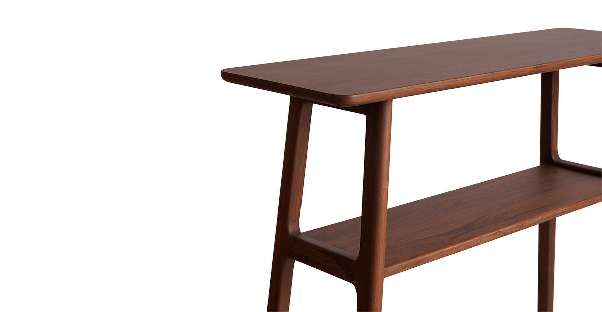 The Tanger Console features beautiful curves in a slim profile crafted in solid teak wood. Whether keeping your knick knacks handy in your favourite ceramic bowl collection at the entryway or dispalying treasured art in your living room, it does a stunning job either way.