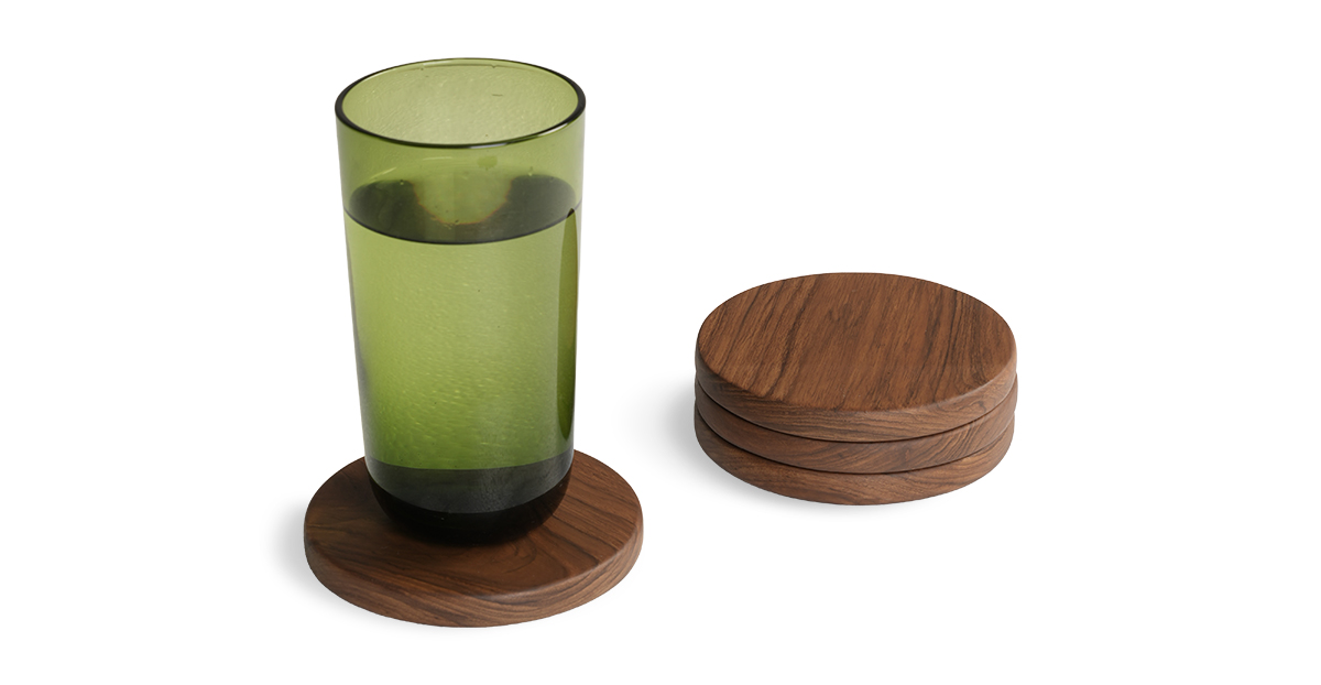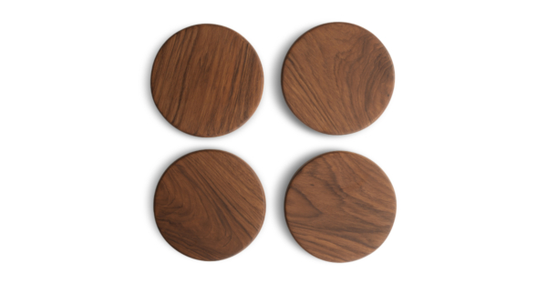 Elevate your sipping game with this sleek set of 4 Vapi coasters in solid teak wood. With a smooth PU finish and stylish curved edges, they’re the perfect blend of charm and durability. As is characteristic to solid wood, the grains on each piece will differ, making them uniquely yours.