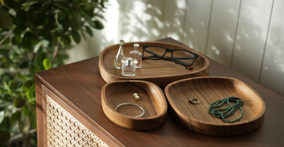 ₹3,499A trio that’s as stylish as it is useful. Carved in solid teak wood, the organically shaped Inca set of 3 trays come in different sizes for your every whim — keys, jewellery, snacks or scents. Contemporary, warm, and full of character — they turn everyday clutter into an effortlessly artful display.