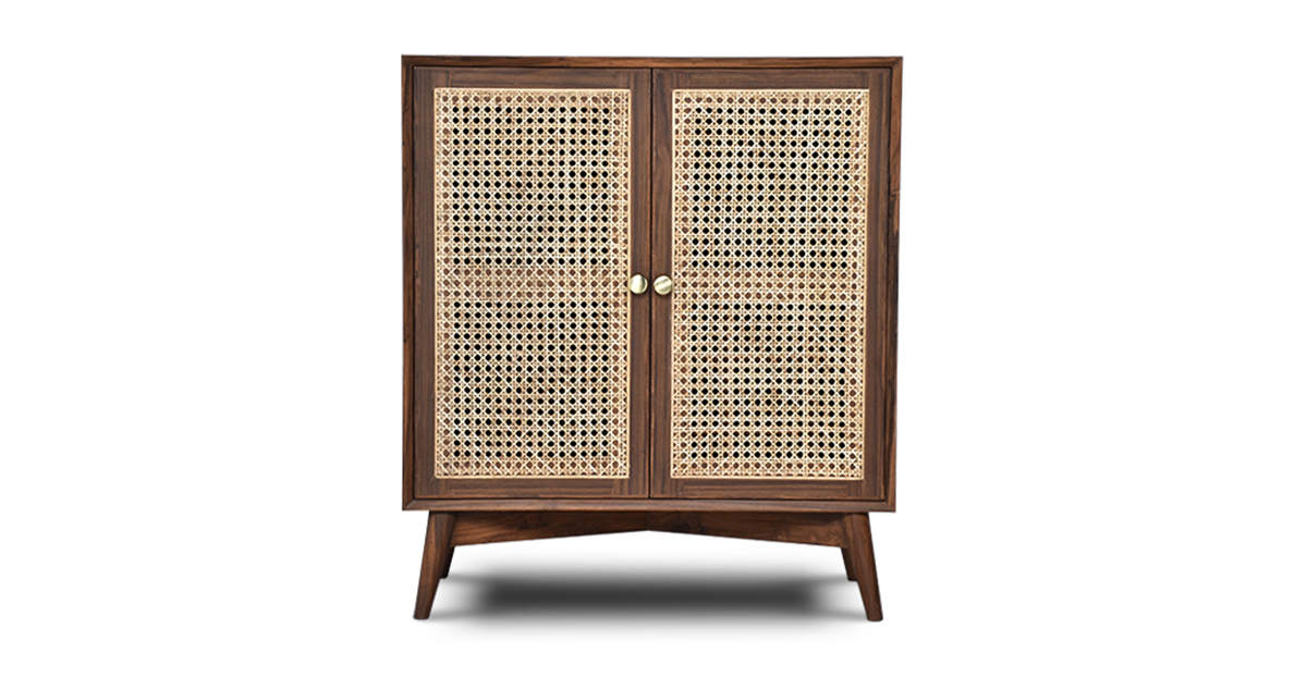 ₹35,999The Wells Rattan Sideboard combines vintage with mid-century and makes for an elegant storage solution for any living space. Constructed in teak veneer with solid teak wood legs, this storage cabinet has plenty of room for your treasured china, liquor collection, books or board games.PRODUCTION TIME: Our manufacturing is currently running with a lead time of 6-8 weeks, as each of our pieces is made to order.